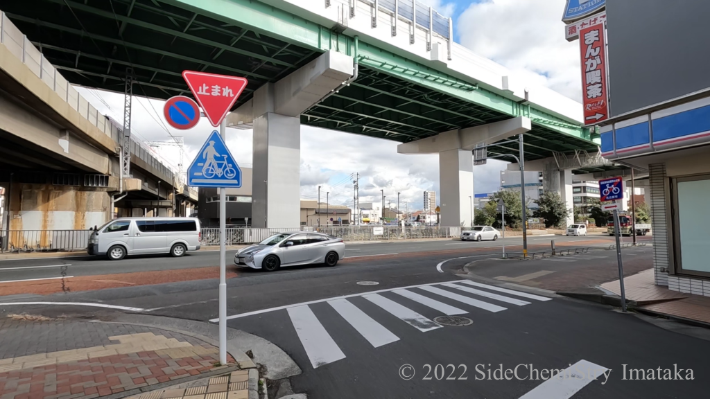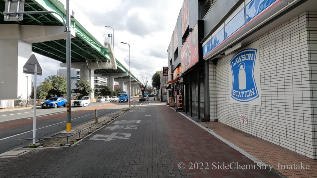 右手にローソンがあるので横断歩道を渡ってまっすぐ歩きます。