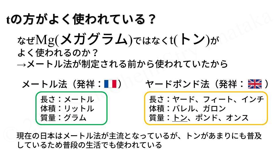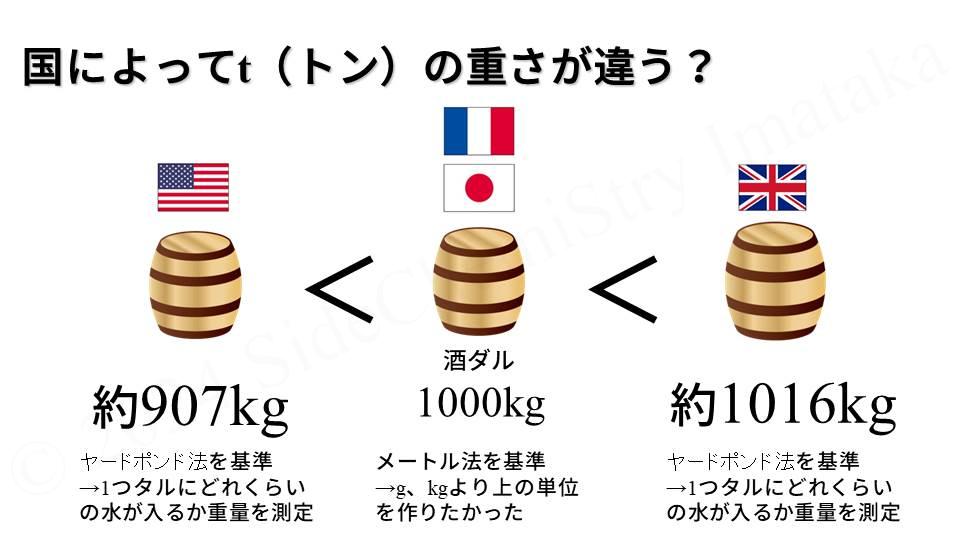 tは国によって重さが違う場合がある…覚えておきましょう。