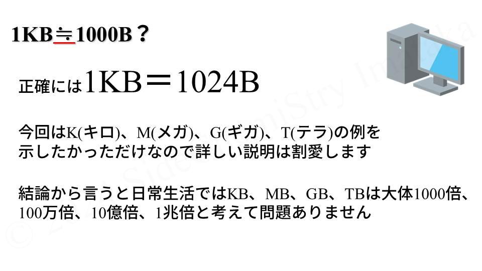 ただ、B(バイト)の場合は=ではなく≒となります。