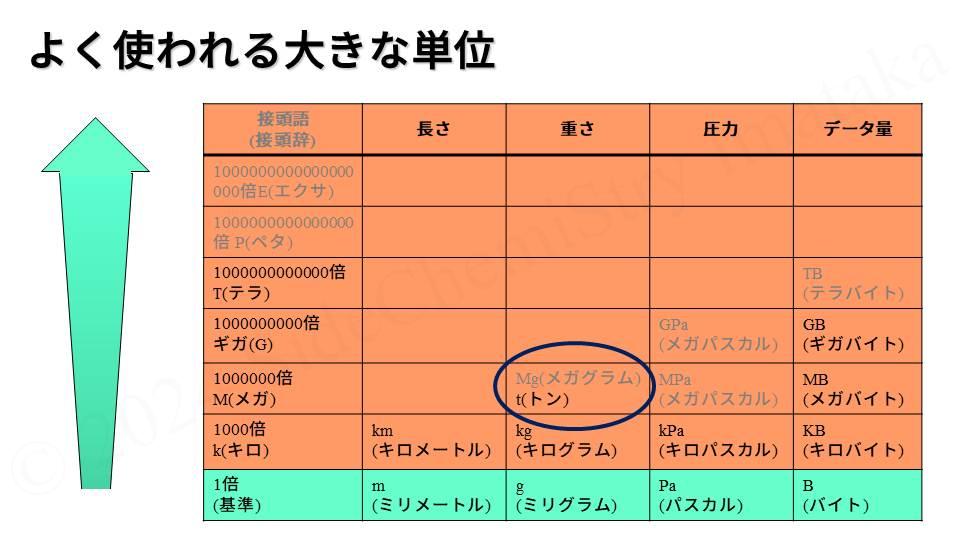 皆さんはMg(メガグラム)という単位聞いたことないと思います。