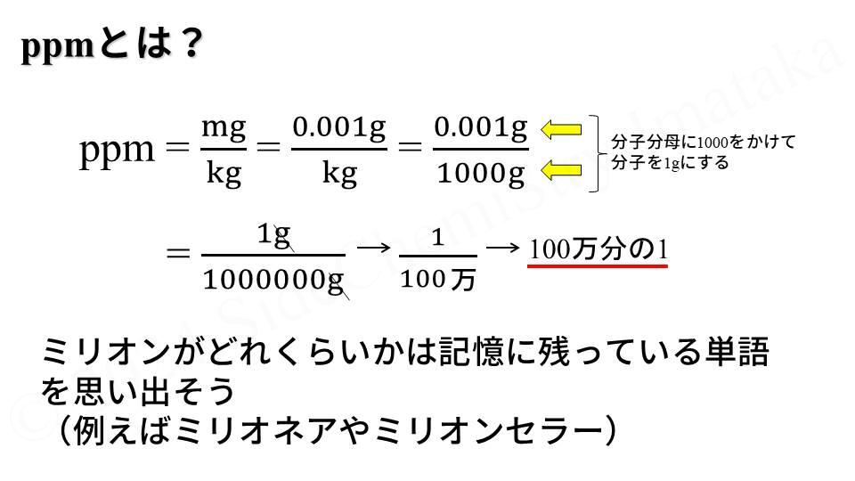 具体的には1ppmとはどれくらいの割合なのか例を作ってみました。